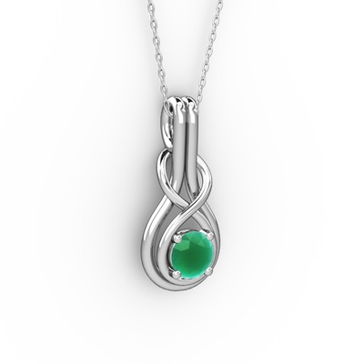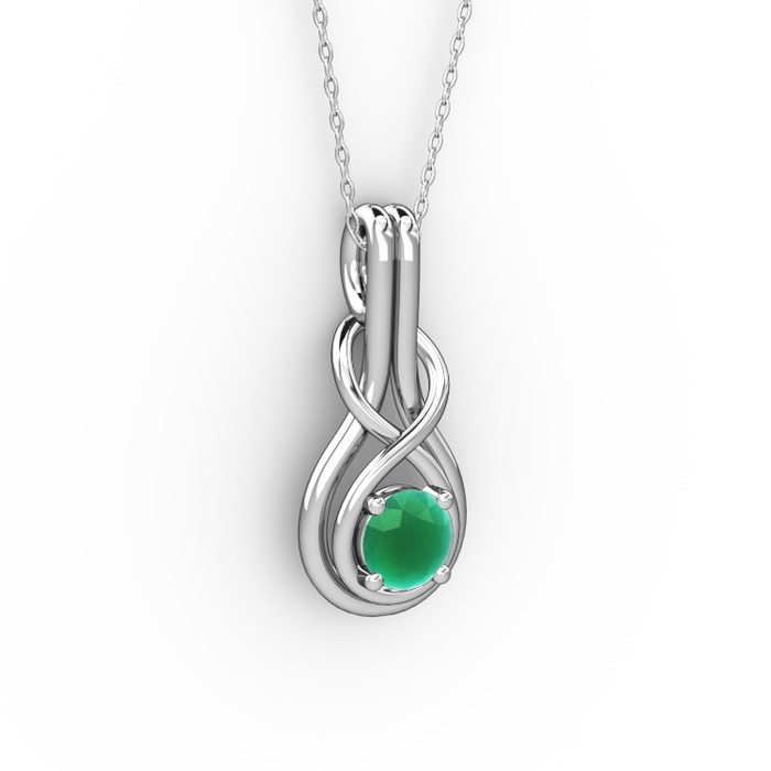 Kök zümrüt 14 ayar beyaz altın kolye (40 cm beyaz altın rolo zincir)
