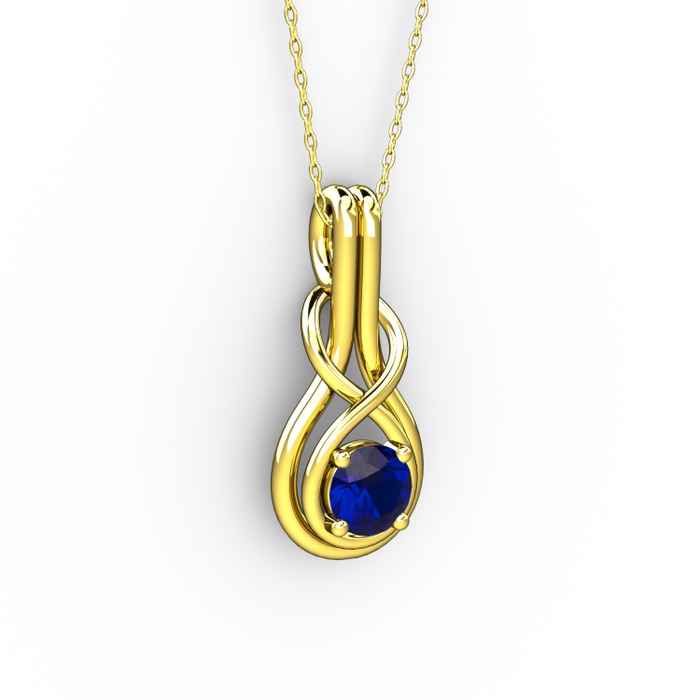 Lab safir 18 ayar altın kolye (40 cm gümüş rolo zincir)