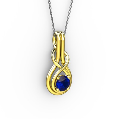 Lab safir 18 ayar altın kolye (40 cm gümüş rolo zincir)