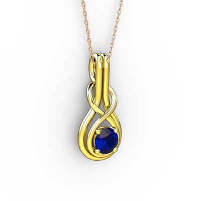 Lab safir 18 ayar altın kolye (40 cm rose altın rolo zincir)