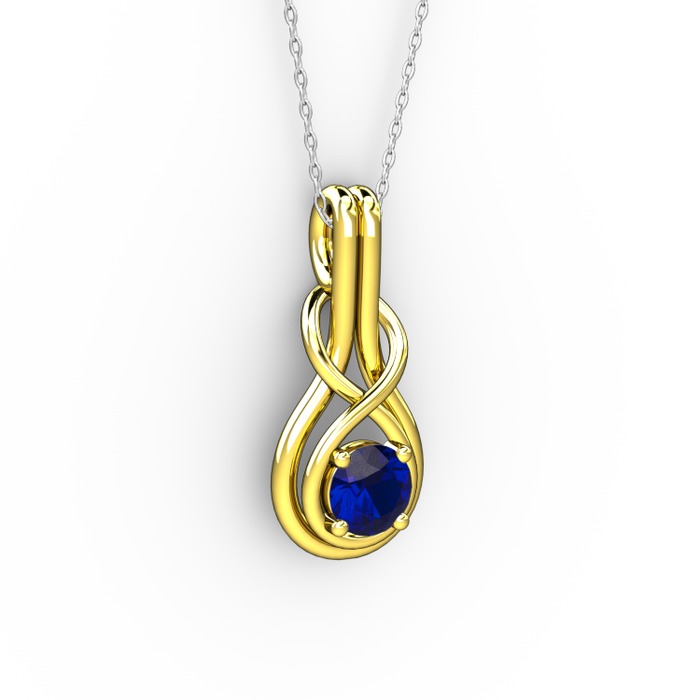 Lab safir 8 ayar altın kolye (40 cm gümüş rolo zincir)