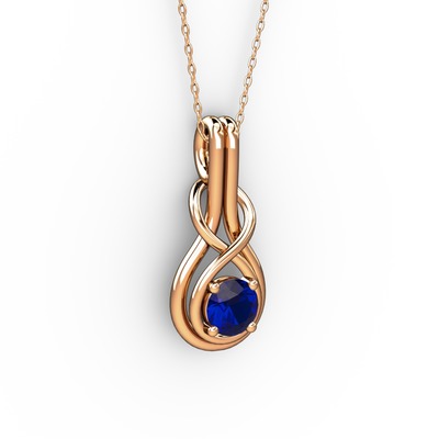 Lab safir 8 ayar rose altın kolye (40 cm rose altın rolo zincir)