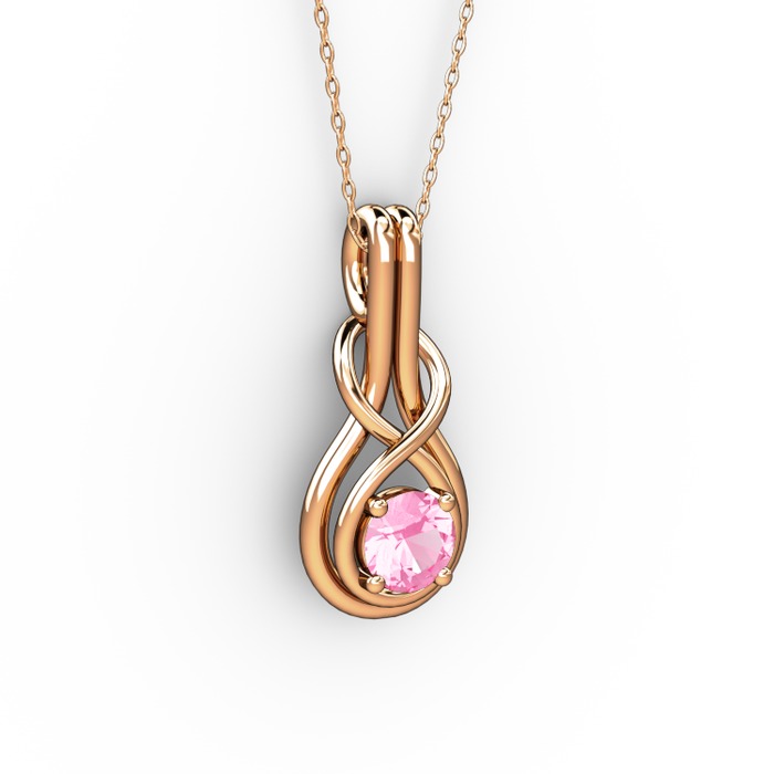 Pembe kuvars 8 ayar rose altın kolye (40 cm rose altın rolo zincir)