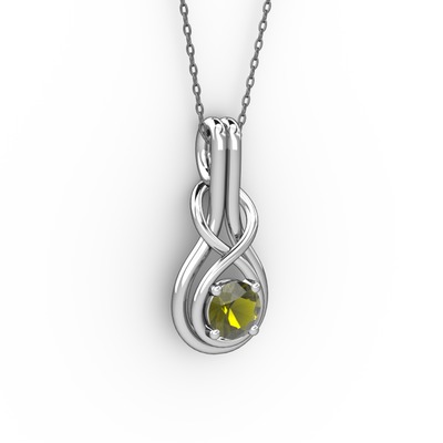 Peridot 18 ayar beyaz altın kolye (40 cm gümüş rolo zincir)