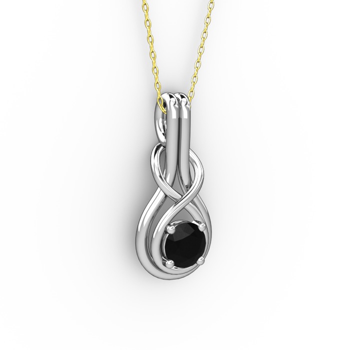 Siyah zirkon 8 ayar beyaz altın kolye (40 cm altın rolo zincir)