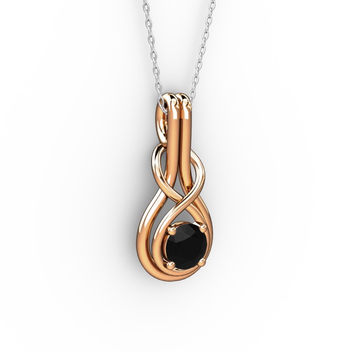 Siyah zirkon 925 ayar rose altın kaplama gümüş kolye (40 cm beyaz altın rolo zincir)