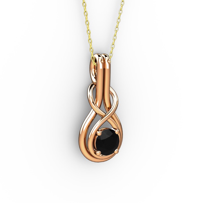 Siyah zirkon 925 ayar rose altın kaplama gümüş kolye (40 cm gümüş rolo zincir)