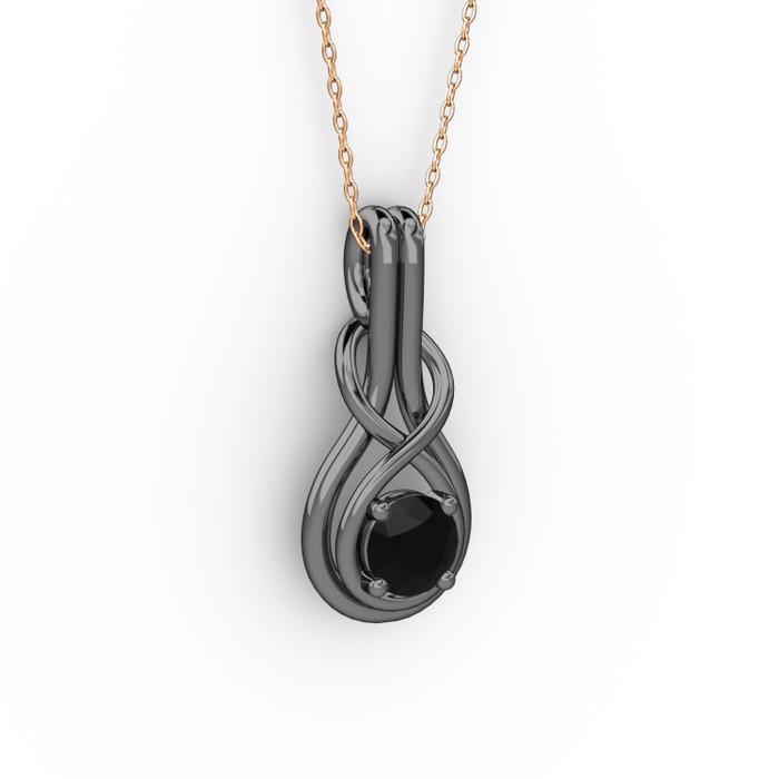 Siyah zirkon 925 ayar siyah rodyum kaplama gümüş kolye (40 cm gümüş rolo zincir)