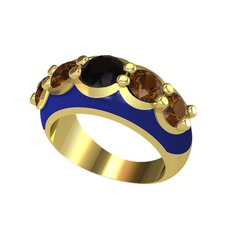 Dumanlı kuvars, pembe kuvars ve siyah zirkon 8 ayar altın yüzük