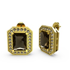 Dumanlı kuvars 18 ayar altın küpe