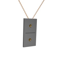 Dumanlı kuvars 925 ayar siyah rodyum kaplama gümüş kolye (40 cm rose altın rolo zincir)