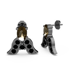 Dumanlı kuvars 925 ayar siyah rodyum kaplama gümüş küpe