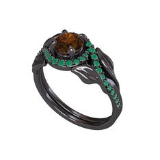 Swarovski ve dumanlı kuvars 925 ayar siyah rodyum kaplama gümüş yüzük