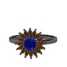 Kök yakut ve dumanlı kuvars 925 ayar siyah rodyum kaplama gümüş yüzük