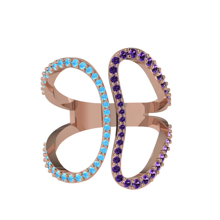 Akuamarin ve ametist 925 ayar rose altın kaplama gümüş yüzük
