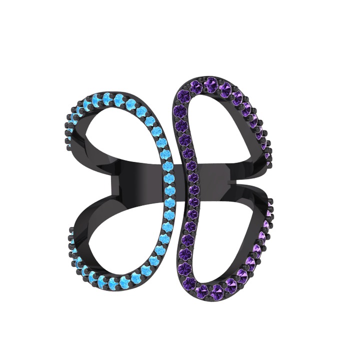 Akuamarin ve ametist 925 ayar siyah rodyum kaplama gümüş yüzük