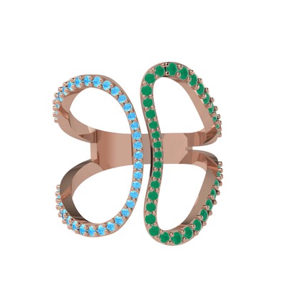 Akuamarin ve kök zümrüt 18 ayar rose altın yüzük