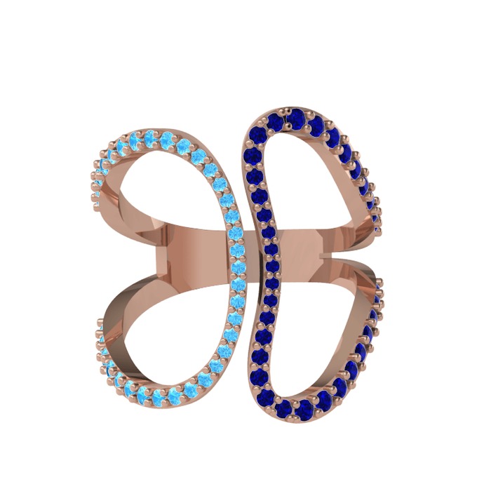 Akuamarin ve lab safir 14 ayar rose altın yüzük