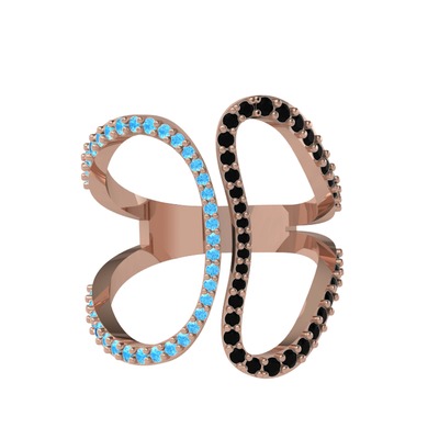 Akuamarin ve siyah zirkon 18 ayar rose altın yüzük