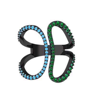 Akuamarin ve yeşil kuvars 925 ayar siyah rodyum kaplama gümüş yüzük