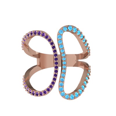 Ametist ve akuamarin 8 ayar rose altın yüzük