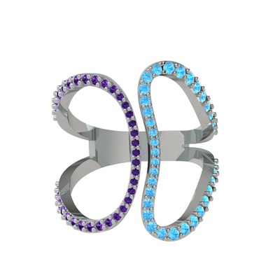 Ametist ve akuamarin 925 ayar gümüş yüzük