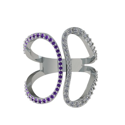 Ametist ve pırlanta 8 ayar beyaz altın yüzük (0.36 karat)