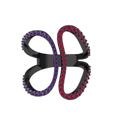 Ametist ve rodolit garnet 925 ayar siyah rodyum kaplama gümüş yüzük