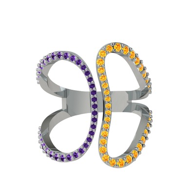 Ametist ve sitrin 18 ayar beyaz altın yüzük