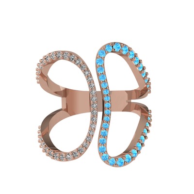 Beyaz zirkon ve akuamarin 925 ayar rose altın kaplama gümüş yüzük