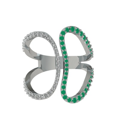 Beyaz zirkon ve kök zümrüt 925 ayar gümüş yüzük