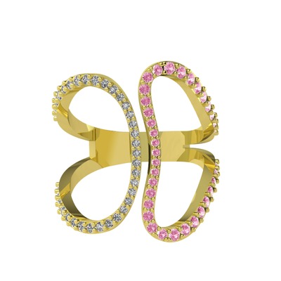 Beyaz zirkon ve pembe kuvars 8 ayar altın yüzük