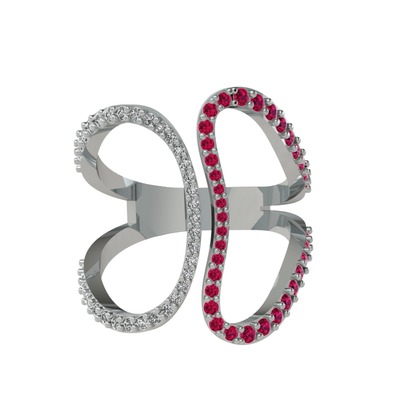 Beyaz zirkon ve rodolit garnet 18 ayar beyaz altın yüzük