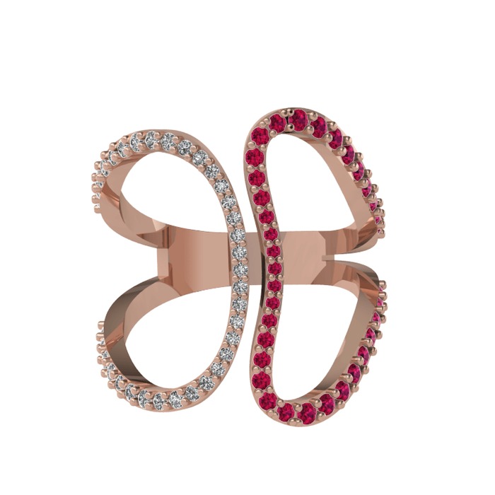 Beyaz zirkon ve rodolit garnet 8 ayar rose altın yüzük