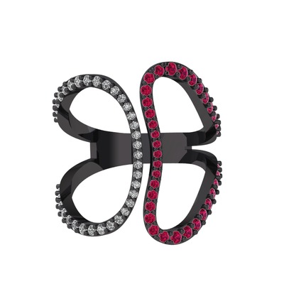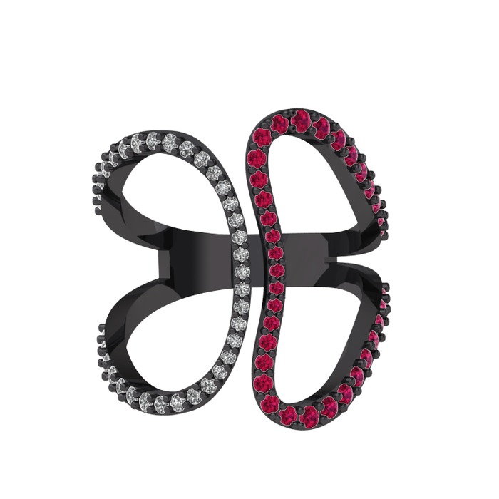 Beyaz zirkon ve rodolit garnet 925 ayar siyah rodyum kaplama gümüş yüzük
