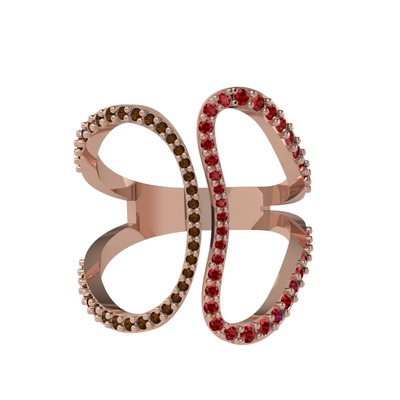 Dumanlı kuvars ve garnet 18 ayar rose altın yüzük