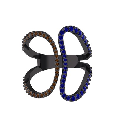 Dumanlı kuvars ve lab safir 925 ayar siyah rodyum kaplama gümüş yüzük