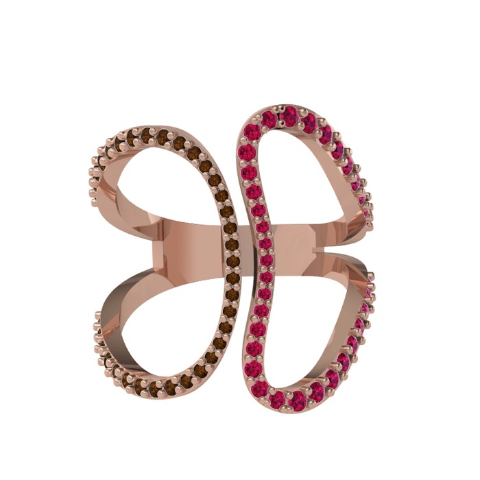 Dumanlı kuvars ve rodolit garnet 8 ayar rose altın yüzük