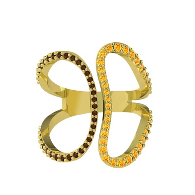 Dumanlı kuvars ve sitrin 14 ayar altın yüzük