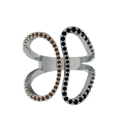 Dumanlı kuvars ve siyah zirkon 925 ayar gümüş yüzük