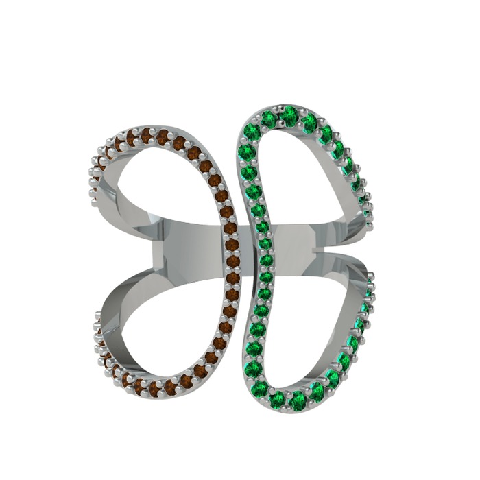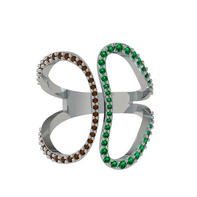 Dumanlı kuvars ve yeşil kuvars 8 ayar beyaz altın yüzük