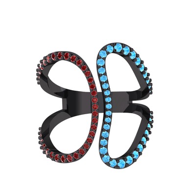 Garnet ve akuamarin 925 ayar siyah rodyum kaplama gümüş yüzük
