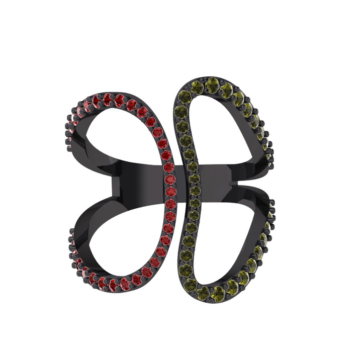 Garnet ve peridot 925 ayar siyah rodyum kaplama gümüş yüzük