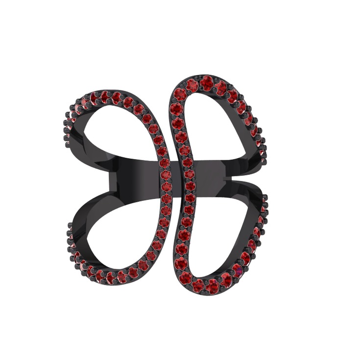 Garnet 925 ayar siyah rodyum kaplama gümüş yüzük