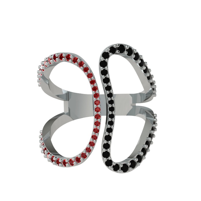 Garnet ve siyah zirkon 8 ayar beyaz altın yüzük