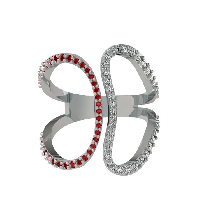 Garnet ve swarovski 18 ayar beyaz altın yüzük