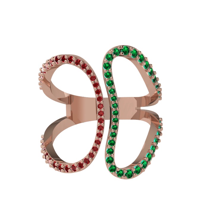 Garnet ve yeşil kuvars 925 ayar rose altın kaplama gümüş yüzük