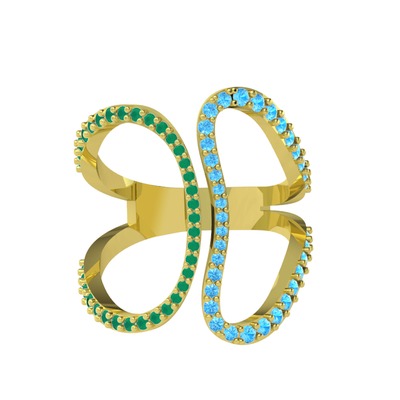 Kök zümrüt ve akuamarin 18 ayar altın yüzük