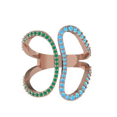 Kök zümrüt ve akuamarin 18 ayar rose altın yüzük