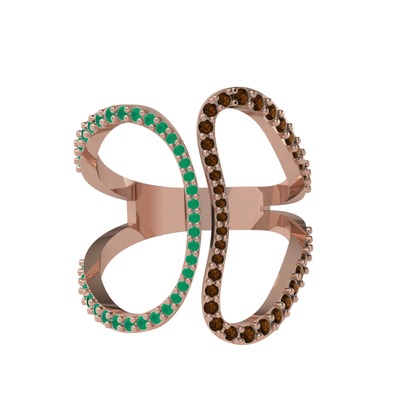 Kök zümrüt ve dumanlı kuvars 8 ayar rose altın yüzük
